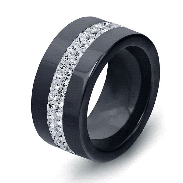 New 10mm Black And White 2 Row Crystal Ceramic Ring Women
