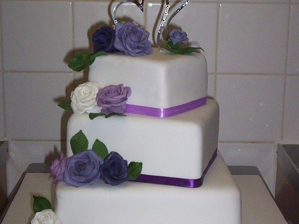 Purple Lilac Roses Square 3 Tier Wedding Cake Cakecentral Com