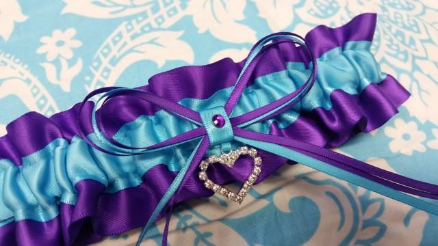 Wedding Garter Single Or Set Beautiful Purple And Turquoise Blue