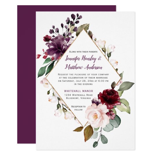 Elegant Purple And Red Floral Framed Wedding Invitation Zazzle Com