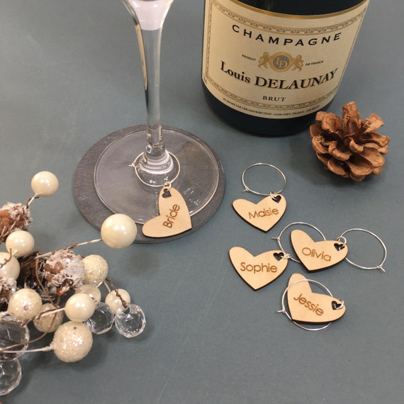 Personalised Wine Glass Charms Heart Weddings Favours Special