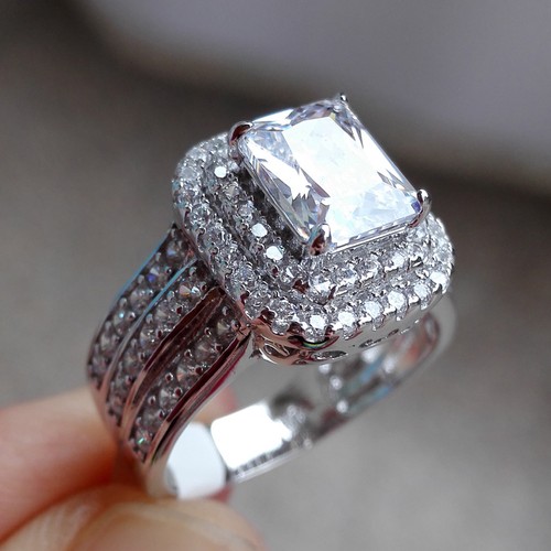 Newshe Women Wedding Band Engagement Ring Double Halo Emerald Cz