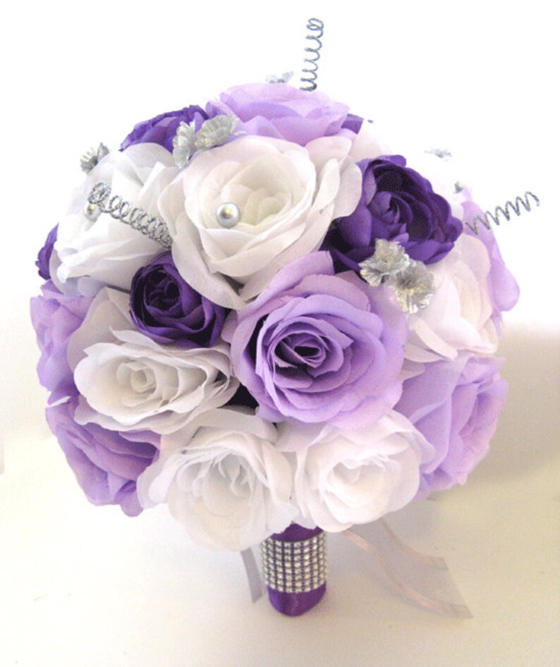 Wedding Flowers Silk Bridal Bouquet 17 Piece Package Lavender Etsy