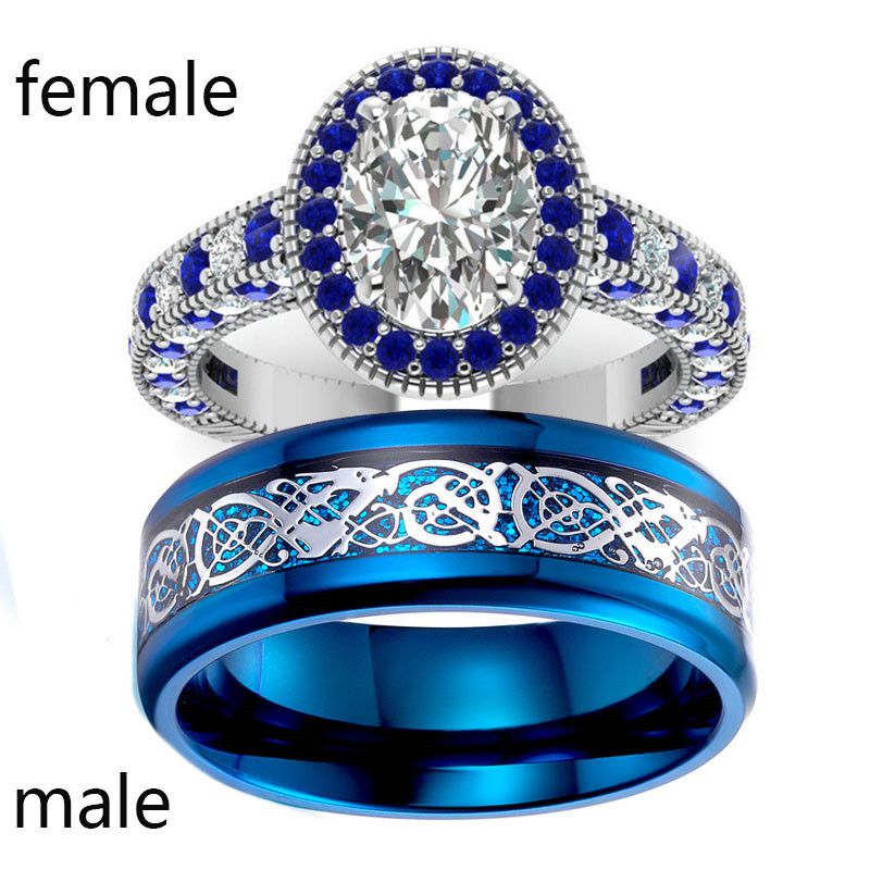 2019 Sz6 12 Two Rings Couple Rings Round Cut Blue Zircon Womens