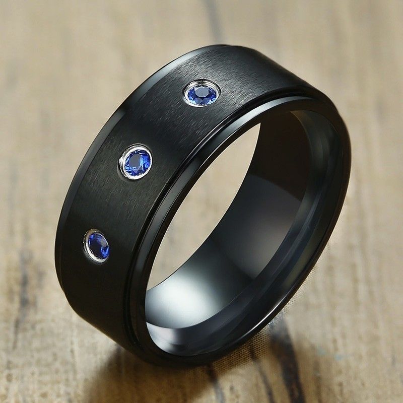 2019 8mm Men S Black Stainless Steel Rings With Stones Blue Cz