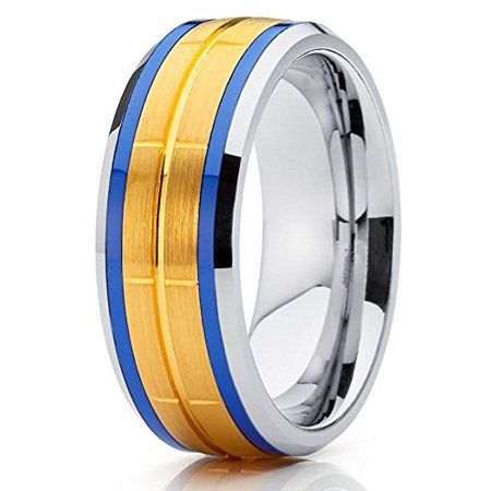 Silly Kings Blue Tungsten Wedding Band 18k Yellow Gold Tungsten
