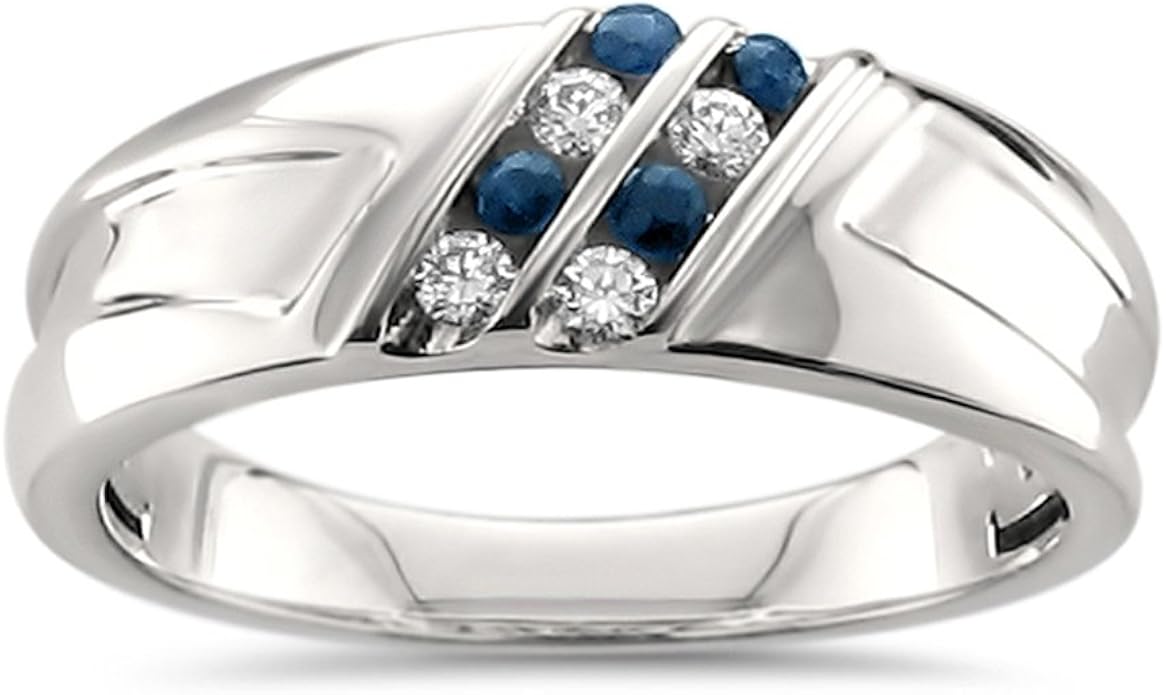 Men S Blue Sapphire 10kt White Gold Filled Wedding Band Ring In