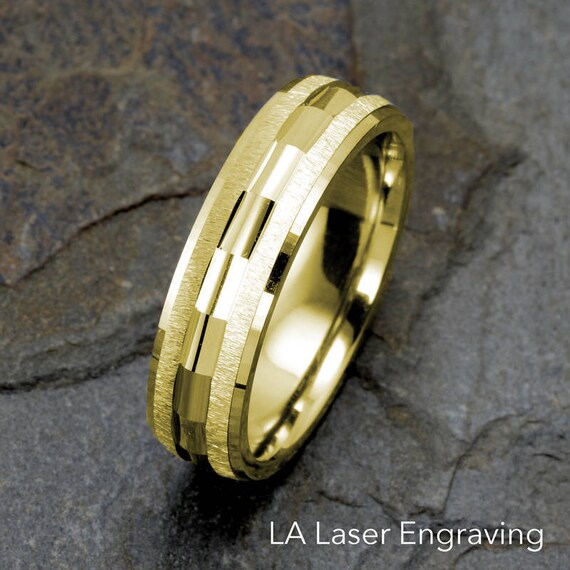 Mens Wedding Band 14k Yellow Gold Wedding Ring 6mm Brushed Etsy