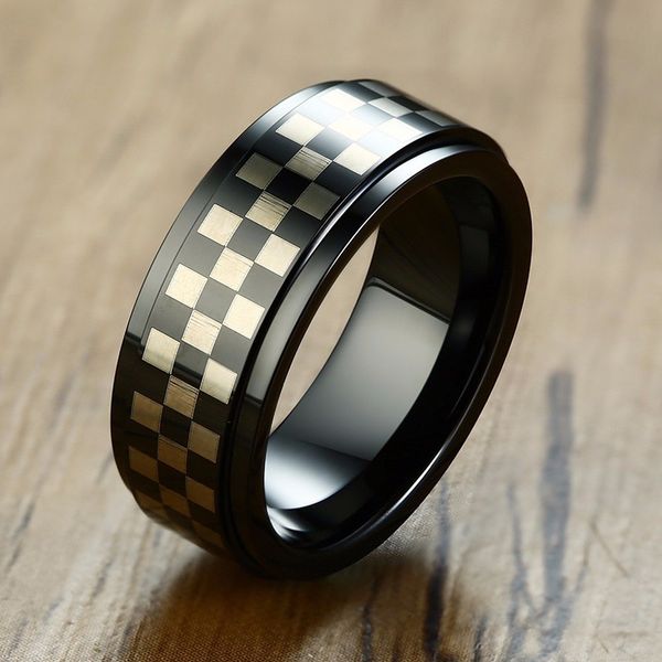 Modern Checkered Flag Style Men S Tungsten Carbide Wedding Band
