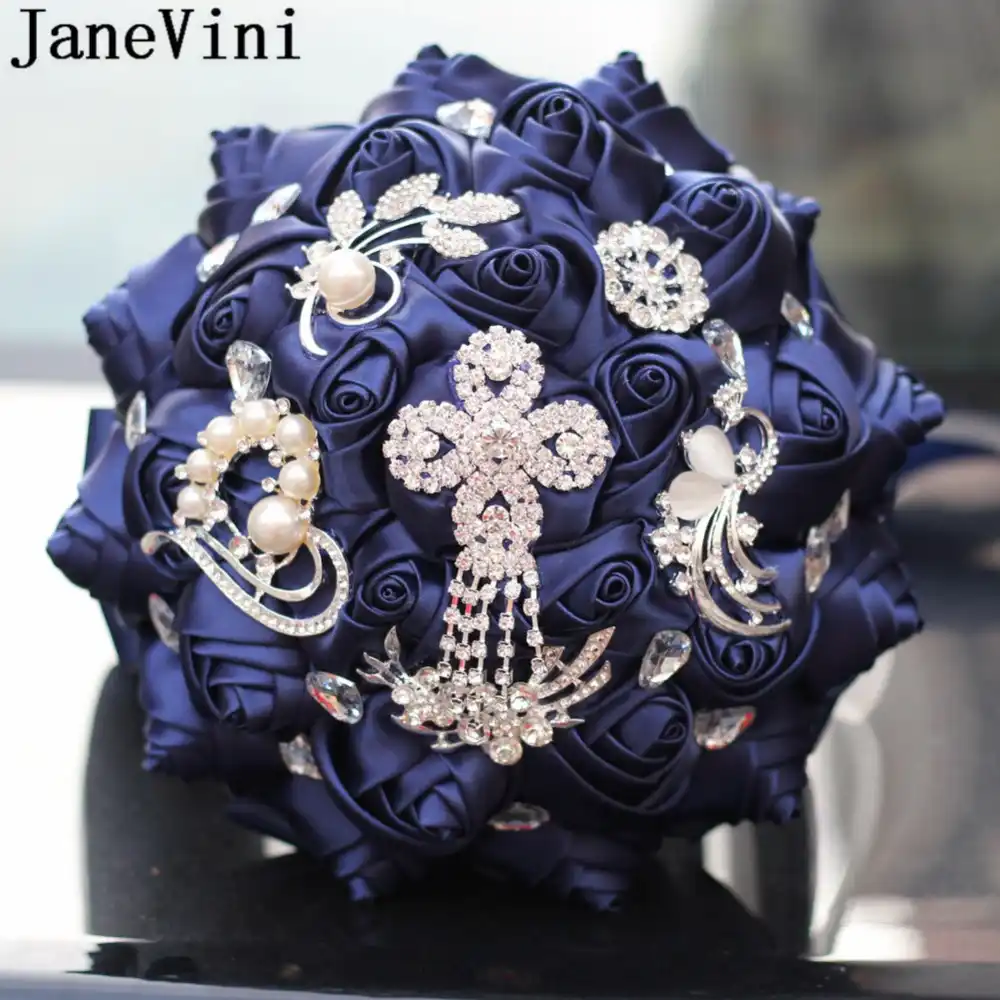 Janevini Navy Blue Bride Flower Bouquet Bridal Blingbling Crystal