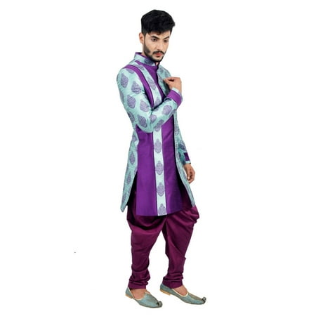 Island Lagoon And Purple Indian Wedding Indo Western Sherwani For