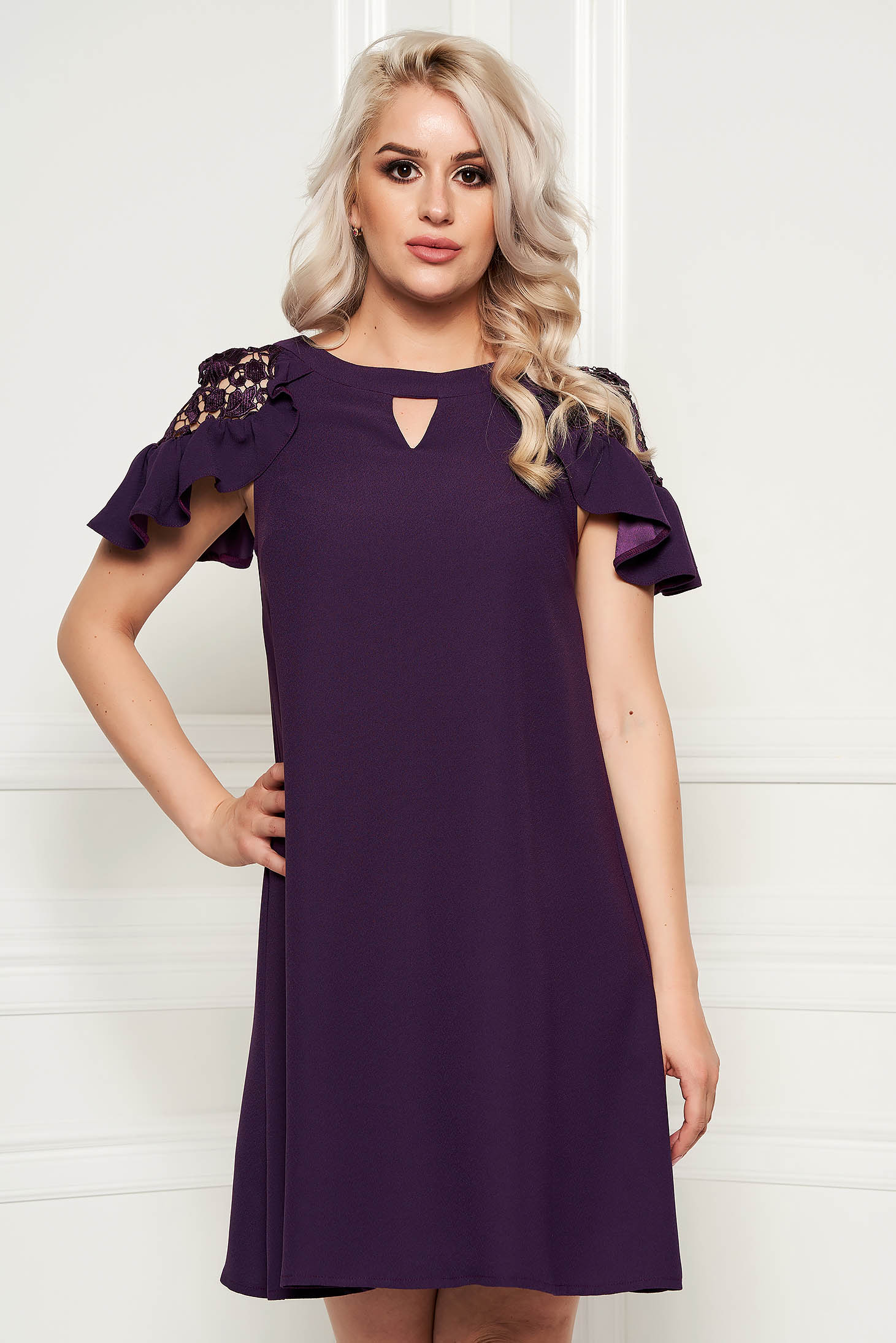 Purple Elegant Flared Dress Short Sleeves Voile Fabric