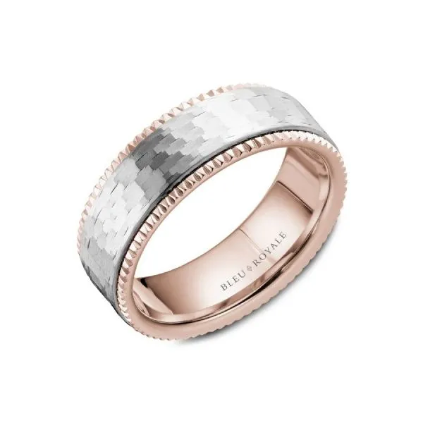 14k Rose Gold Platinum Two Tone Hammered Mens Wedding