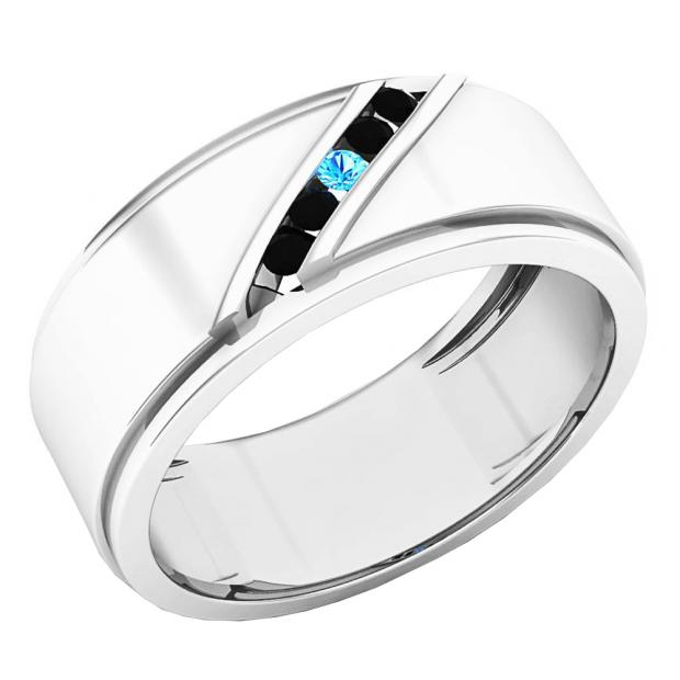 18k White Gold Round Cut Blue Topaz Black Diamond Men S