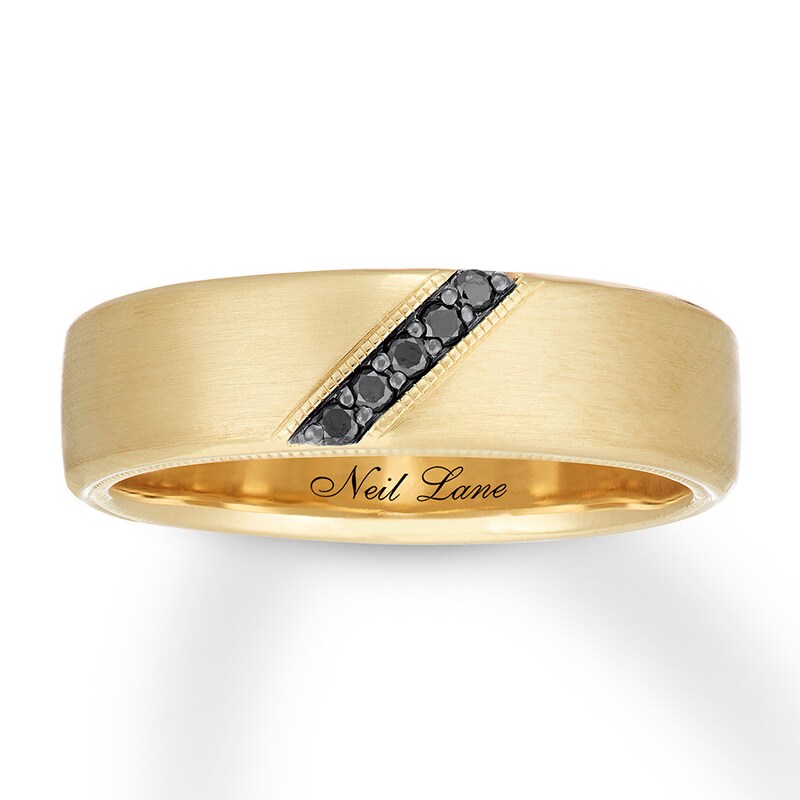 Neil Lane Men S Black Diamond Band 1 15 Ct Tw 14k Yellow Gold