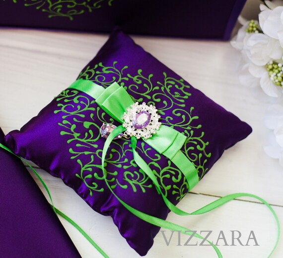 Ring Pillows Purple Wedding Wedding Ring Pillow Green And Etsy