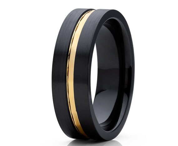 Men S Two Tone Black Wedding Band Yellow Gold Inner Ring Offset