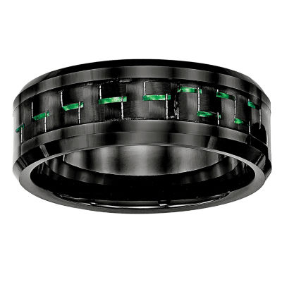 Personalized Mens 8mm Black Ceramic Green Carbon Fiber Wedding
