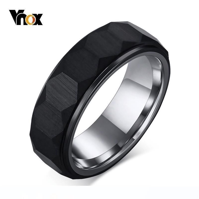 Vnox Hexagon Mens Rings Black Tungsten Carbide Unique Three