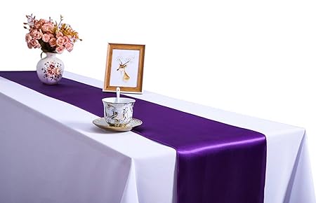 Comvip Wedding Decorations Tablecloth Long Satin Table Runner Dark