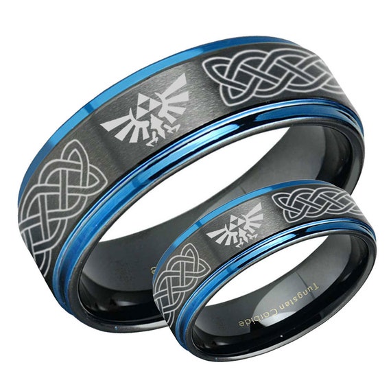 Celtic Zelda His Hers Tungsten Wedding Band Mens Black Blue Etsy
