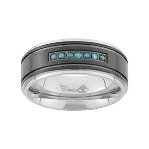 Men S 6 0mm Enhanced Blue Diamond Accent Black Ip Stainless Steel