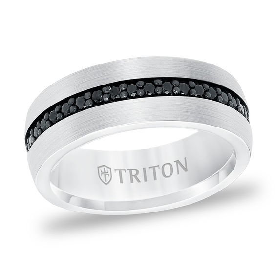 Men S 8 0mm Black Sapphire Groove Brushed Finish Wedding Band