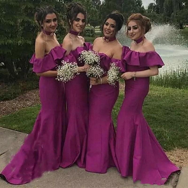 Dark Fushia Mermaid Bridesmaid Dresses For Wedding Sexy Off The