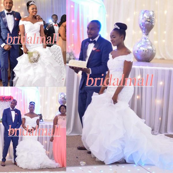 African 2019 Appliqued Organza Mermaid Wedding Dresses Off The