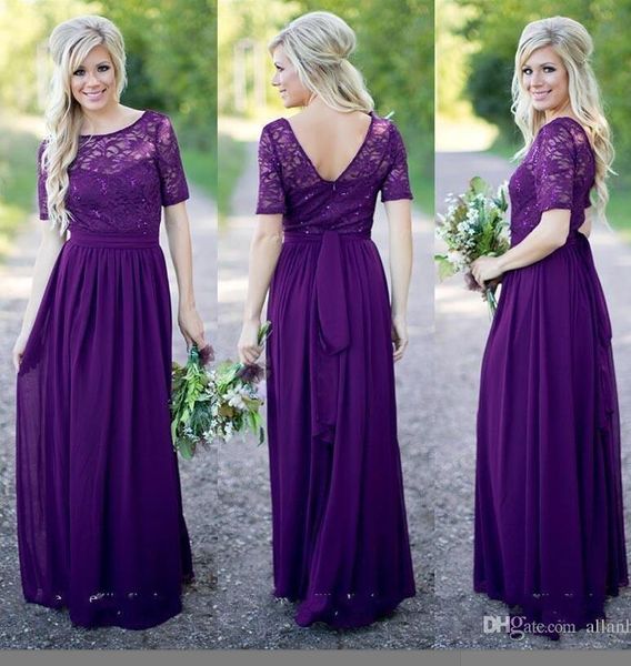 Country Style Purple Lace Bridesmaid Dresses Sexy Backless Long
