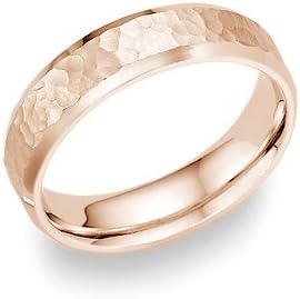 Amazon Com 14k Rose Gold Hammered Wedding Band Ring For Women S