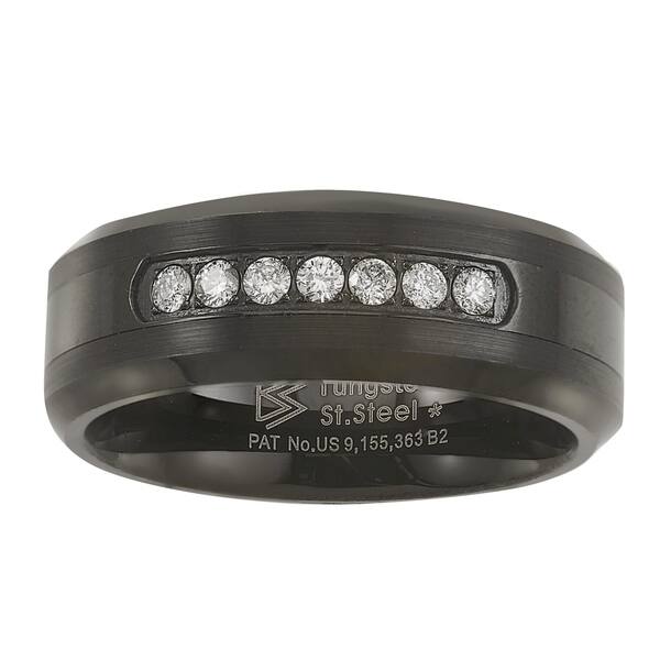 Shop Black Tungsten Carbide Diamond Mens Wedding Band 20ctw On