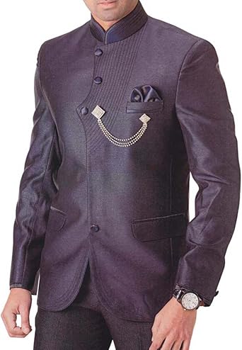 Baroque Short Tail Slim Fit Groom Suit In Purple Damasked Groom