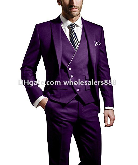 New Arrival Groomsmen Peak Lapel Groom Tuxedos Purple Men Suits