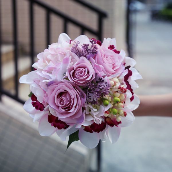Janevini 2018 Romantic Pink Purple Bride Bouquets Wedding Flowers