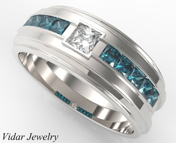Princess Cut Blue Diamond Wedding Band Vidar Jewelry Unique