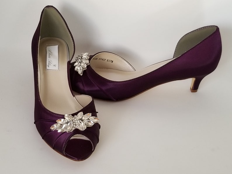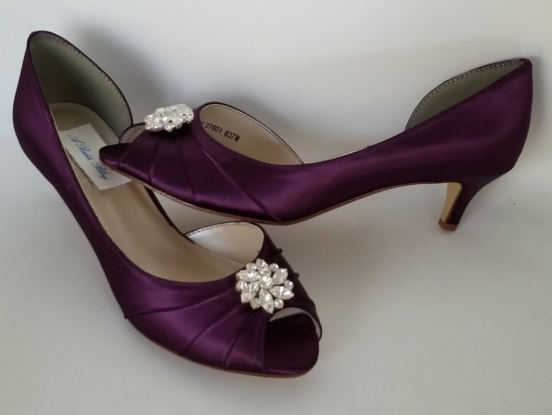 Eggplant Purple Wedding Shoes With A Crystal Swirl Brooch Etsy