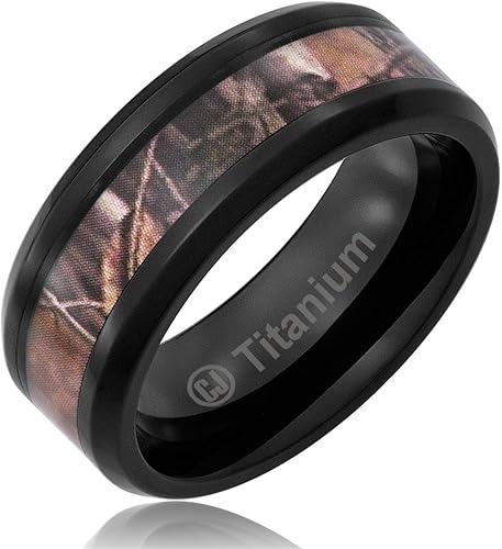 8mm Men S Titanium Hunting Ring Wedding Band Black Plated Camo