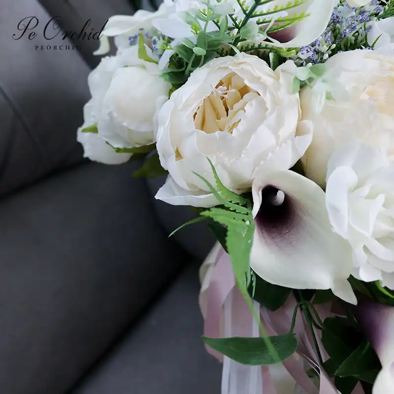Peorchid Beautiful Calla Lily Wedding Bouquet Waterfall Ramo Novia