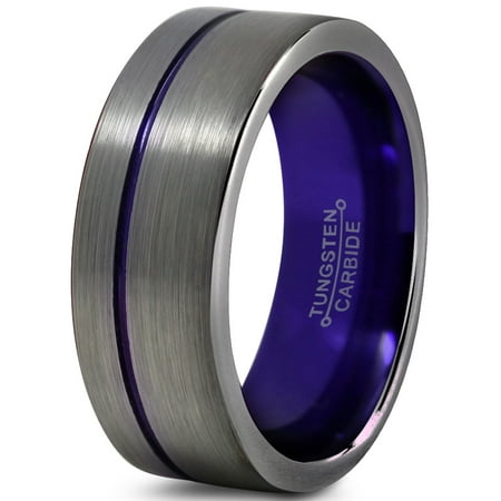 Mens Wedding Band Silver Tungsten Ring Purple 8mm Wedding