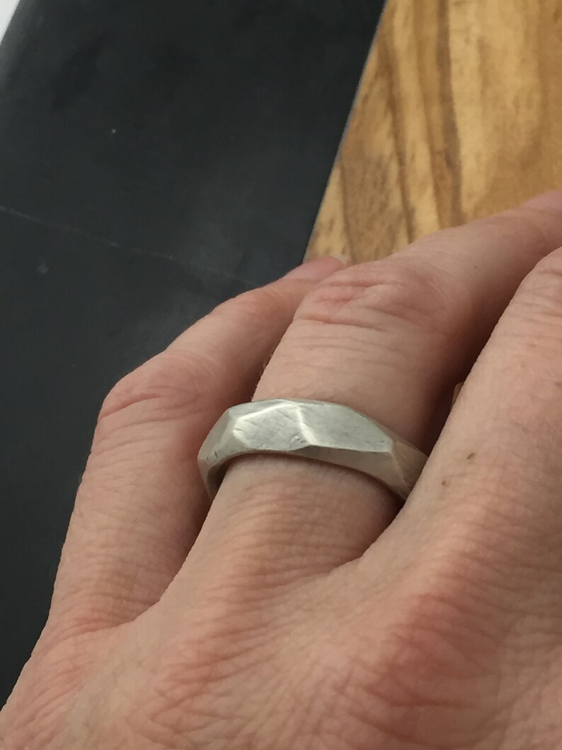 Faceted Mens Wedding Ring In 14k Or 18k Gold Hand Chiseled Etsy