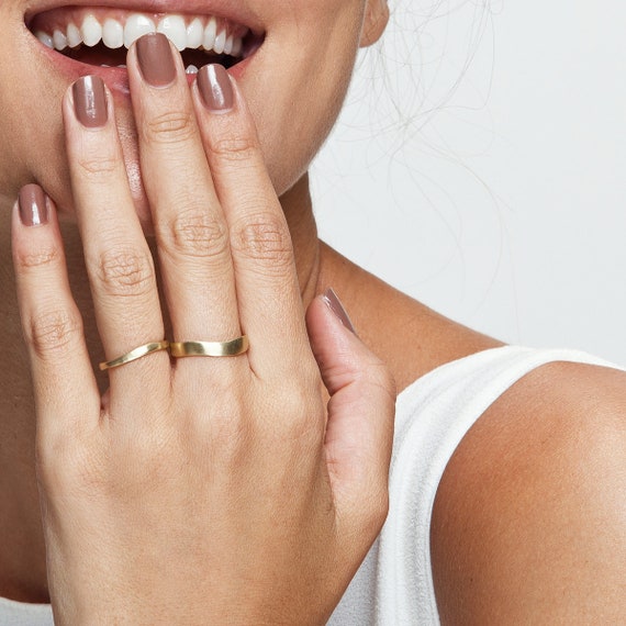 Men Wedding Ring Man Wedding Band Hammer Gold Ring Woman