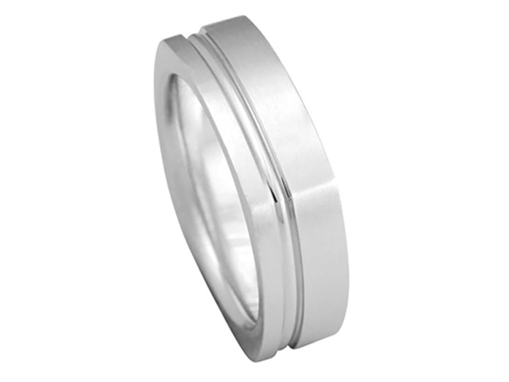 Men S 14k White Gold Square Shape Grooved 7mm Comfort Fit Wedding