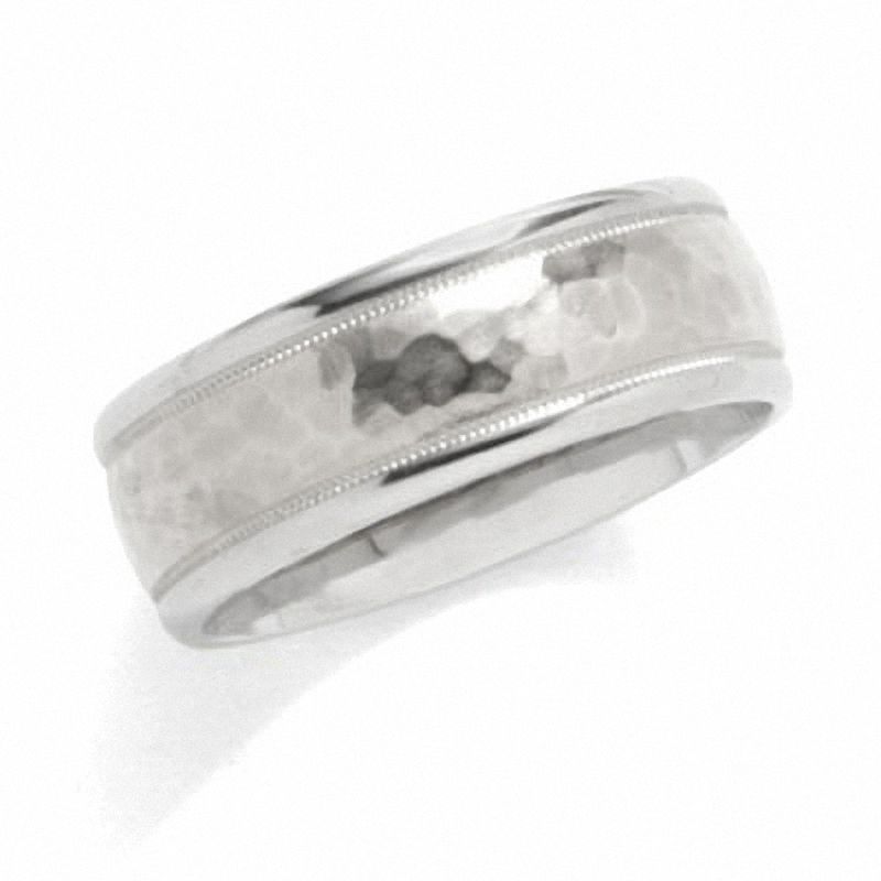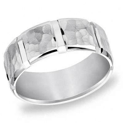 Men S 8 0mm Hammered Wedding Band In 14k White Gold View All