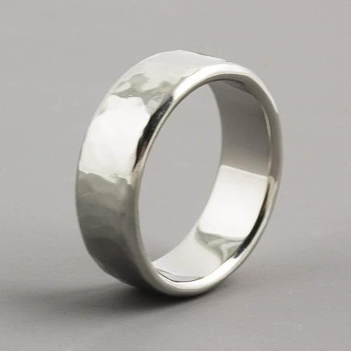 Amazon Com 7mm Man S Or Unisex Hammered Platinum Wedding Band