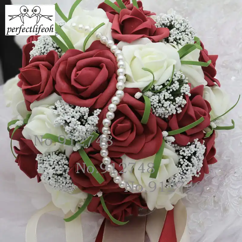 Perfectlifeoh Artificial Pearls Flower Rose Bouquet Beautiful