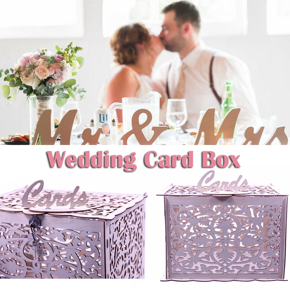 Home Decor Accents Amosfun Diy Wedding Card Box With Lock Rustic