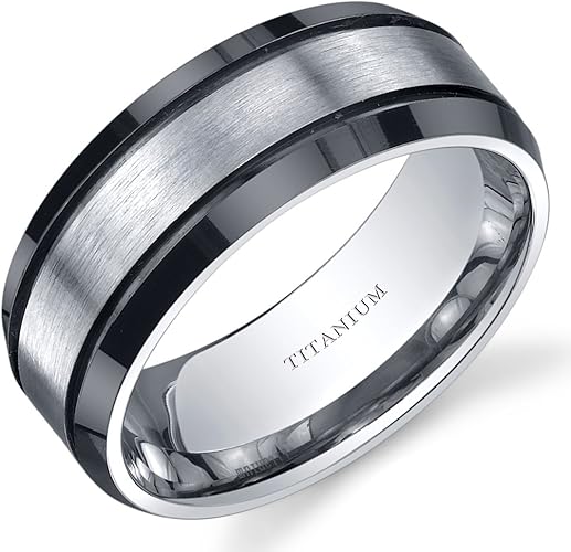Peora Beveled Edge Black And Silver Tone Mens 8mm Titanium Wedding