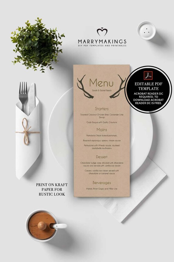 Wedding Menu Template Wedding Template Editable Menu Diy Etsy