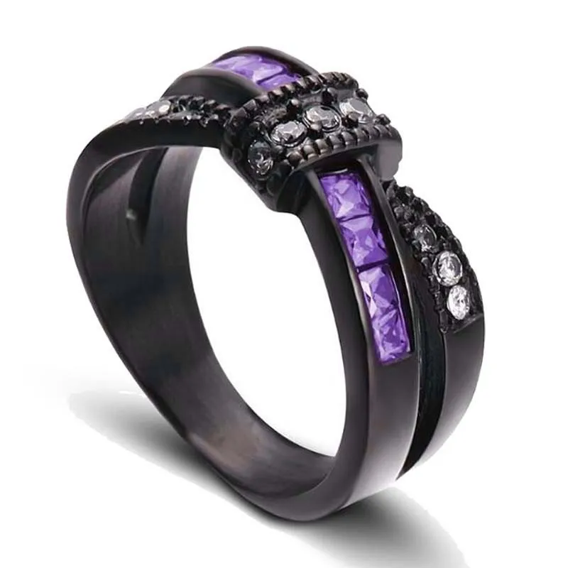 Black Gold Filled Wedding Rings Set For Women Blue Red Purple Cz